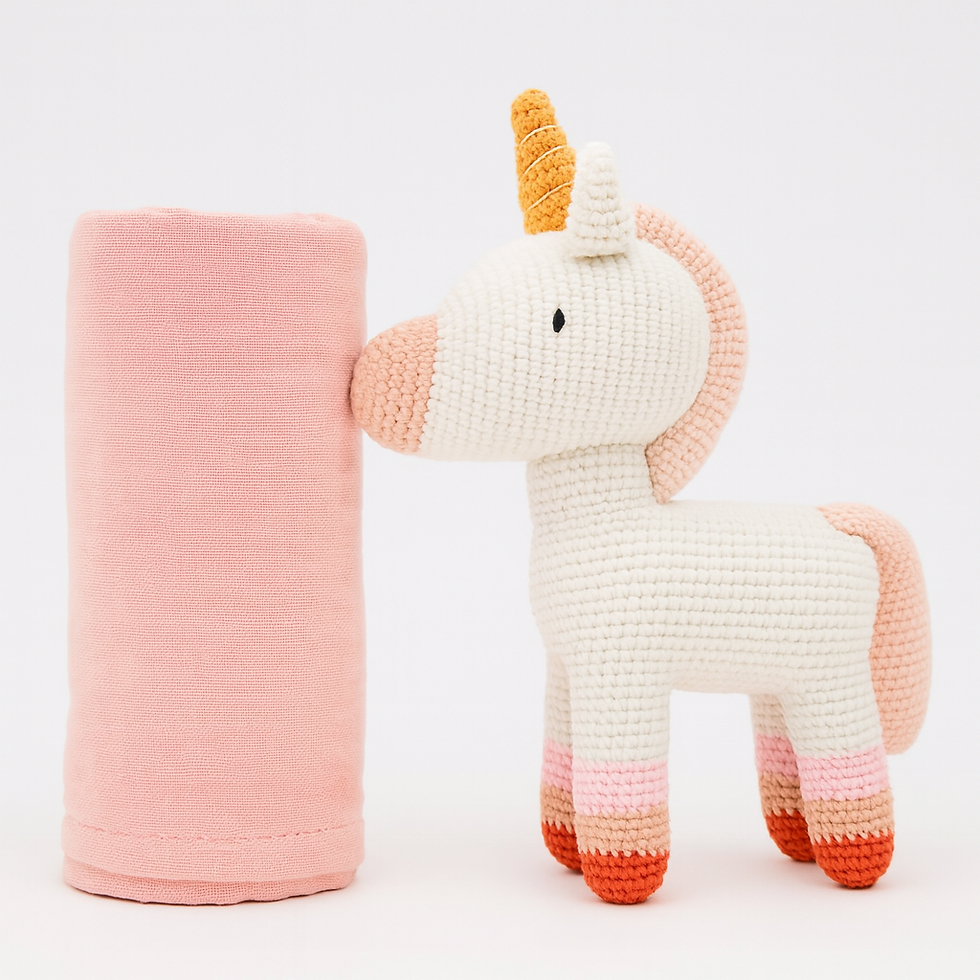 Handgefertigt Einhorn mit einem Musselin Halstuch aus Biobaumwolle